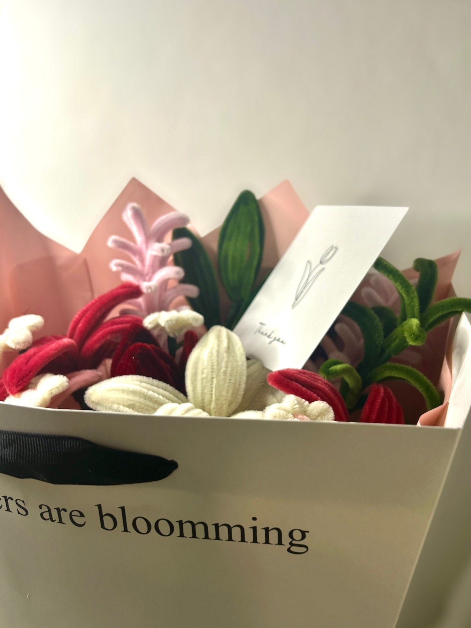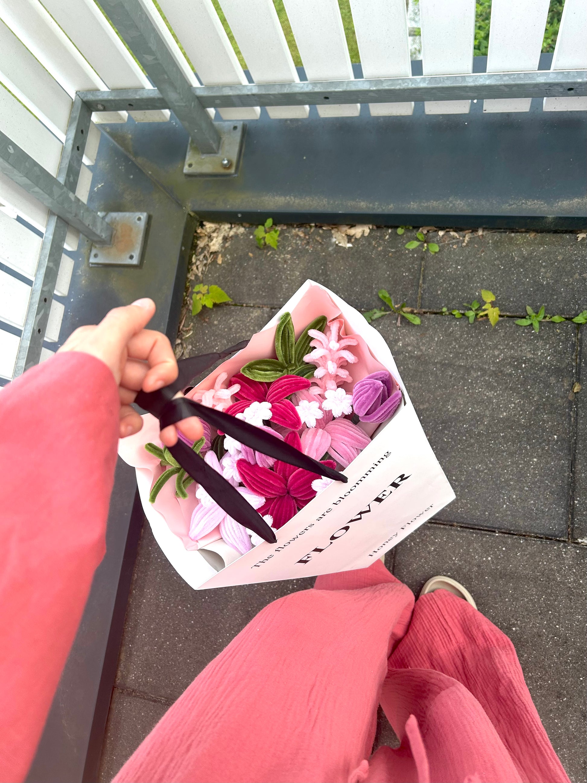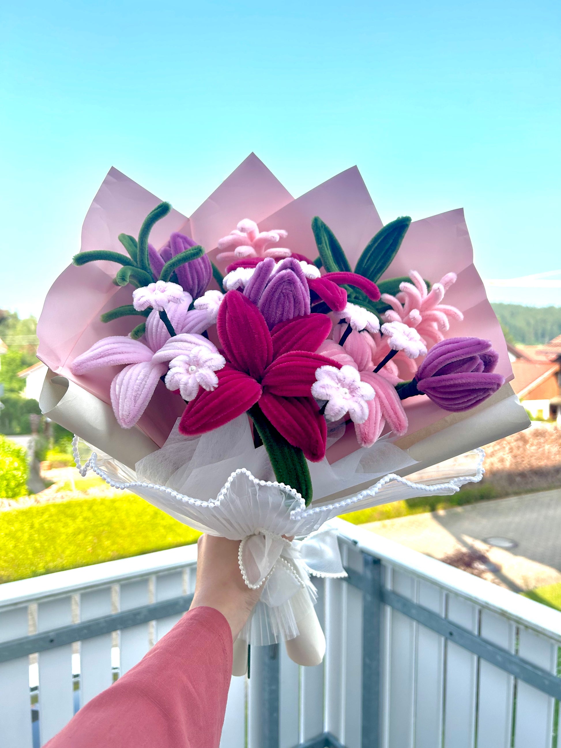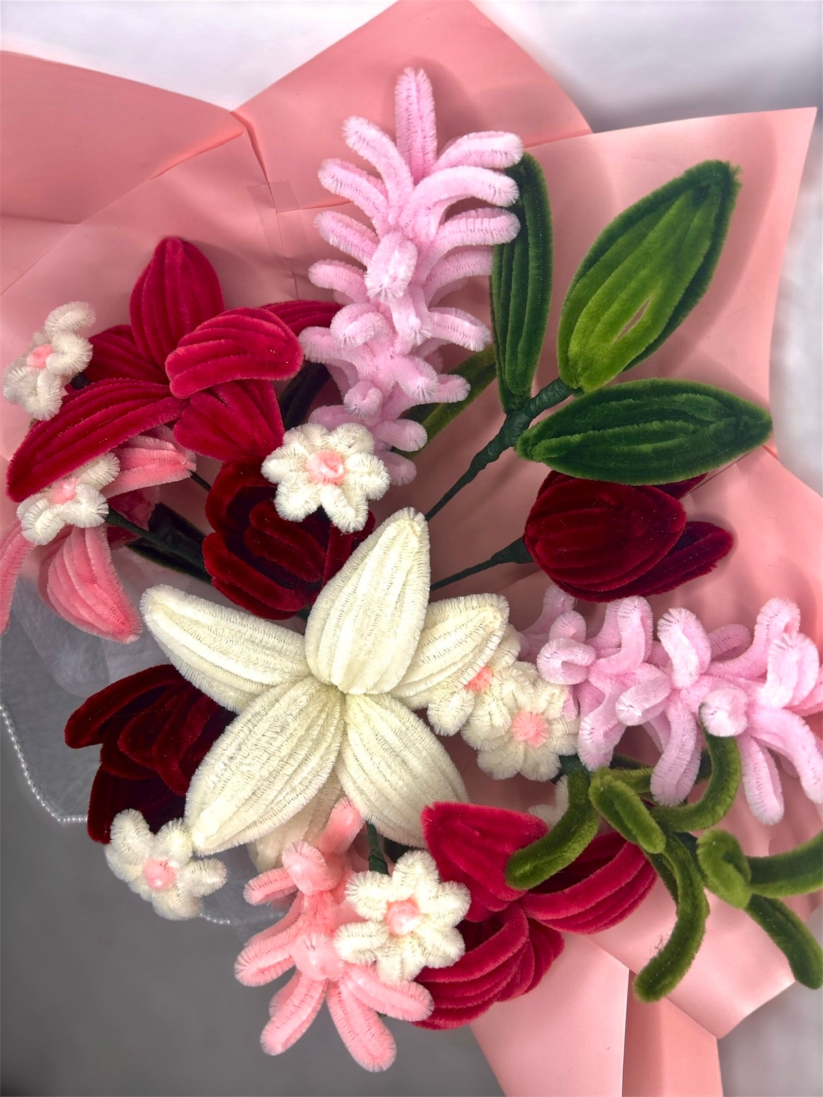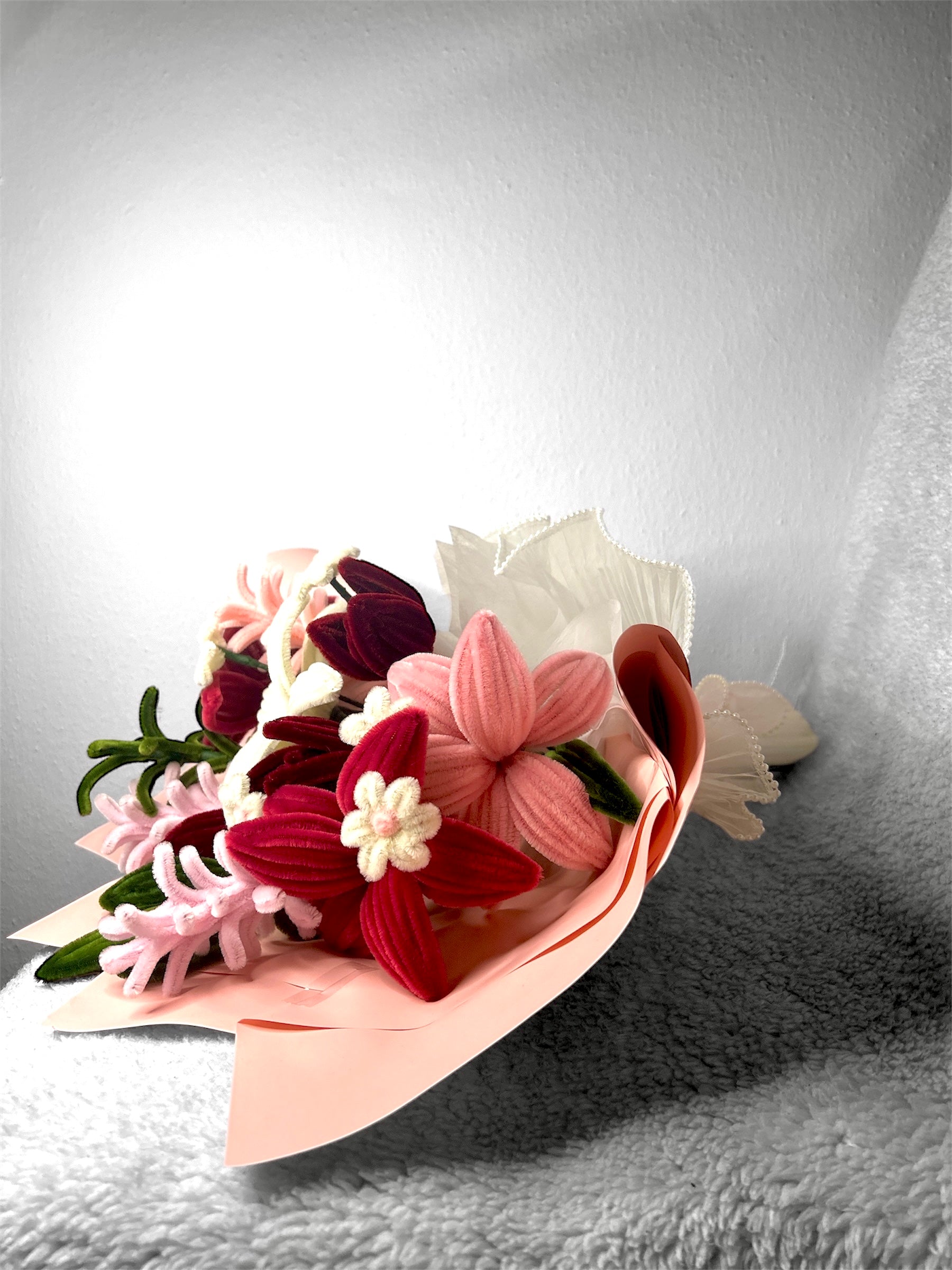 Dies ist ein handgefertigtes Blumenstrauß aus Pipe Cleanern mit dem Namen "Pink Love".