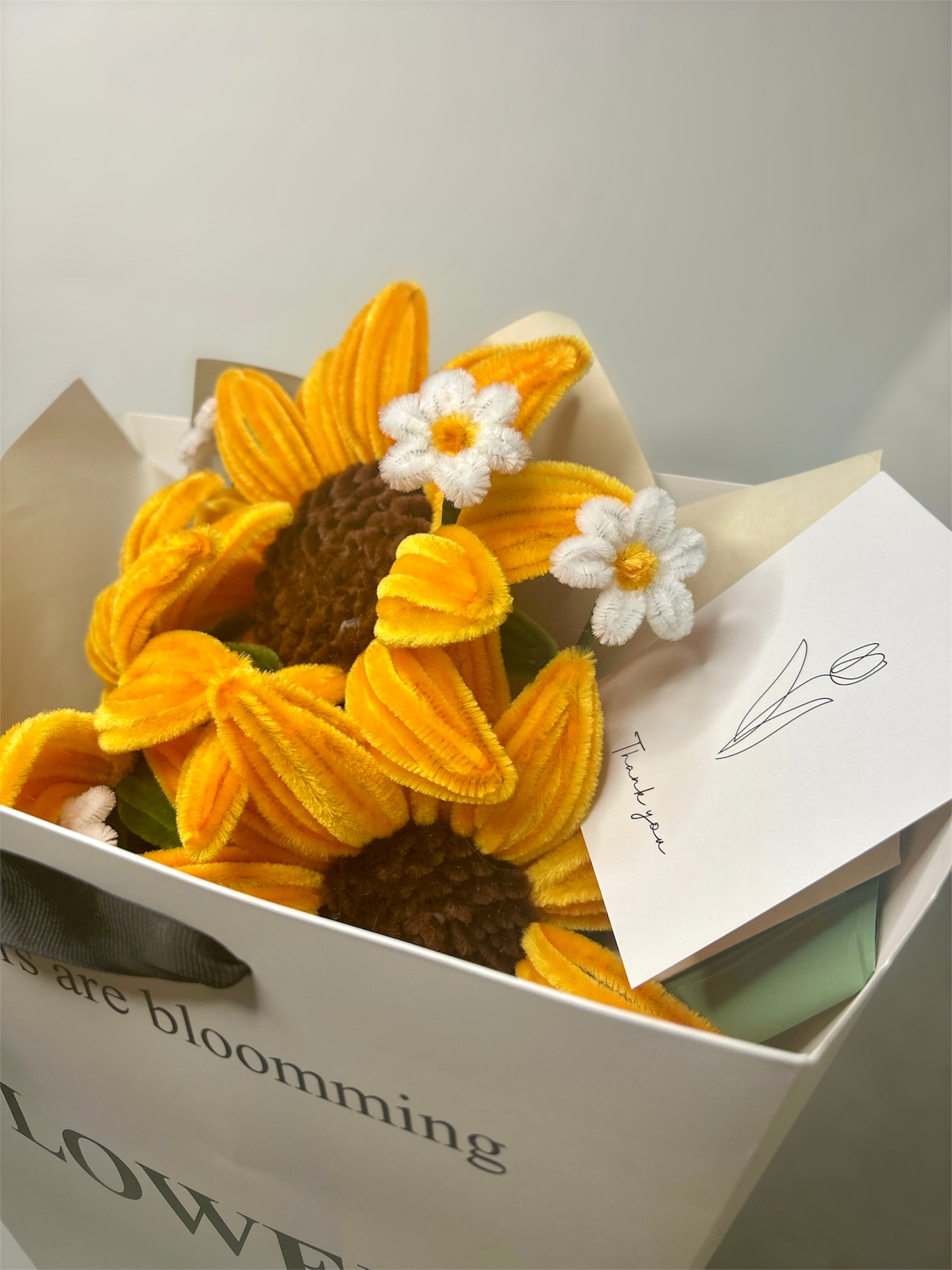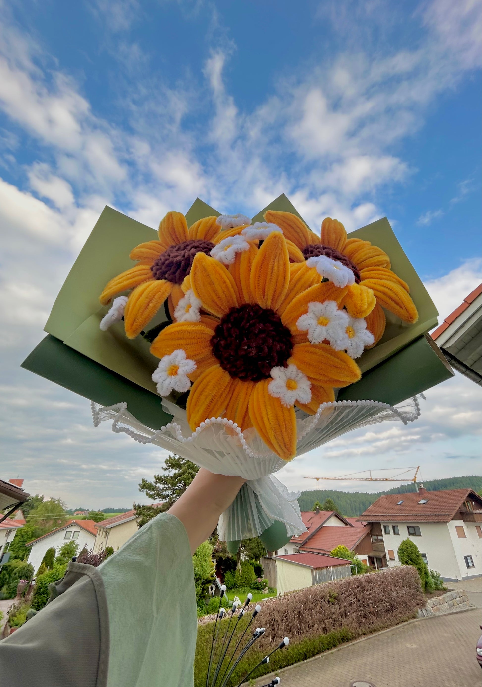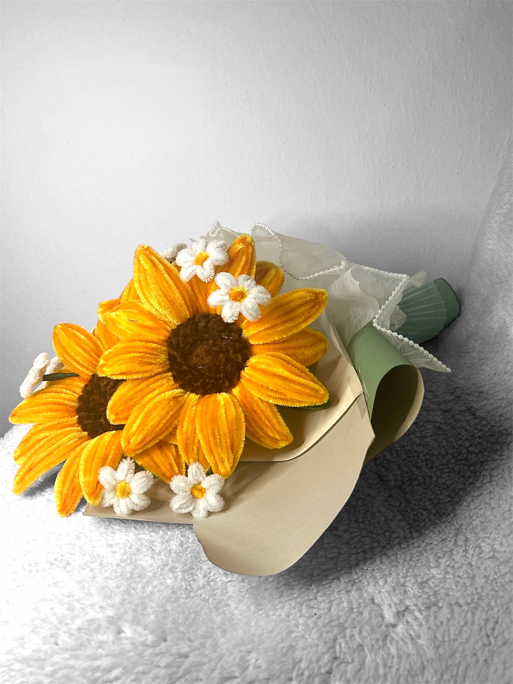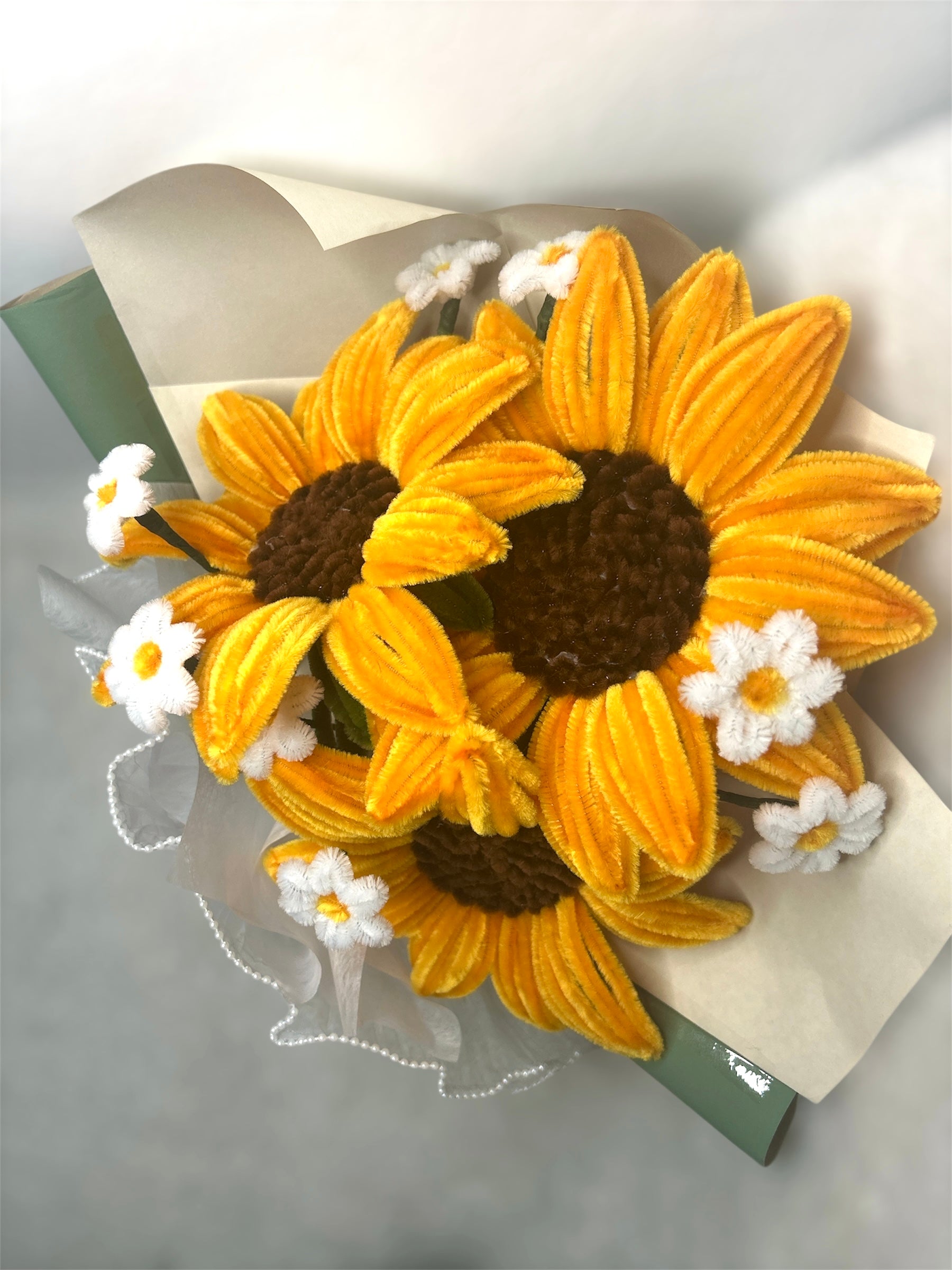 Dies ist ein handgefertigtes Blumenstrauß aus Pipe Cleanern mit dem Namen "Sunny Day".